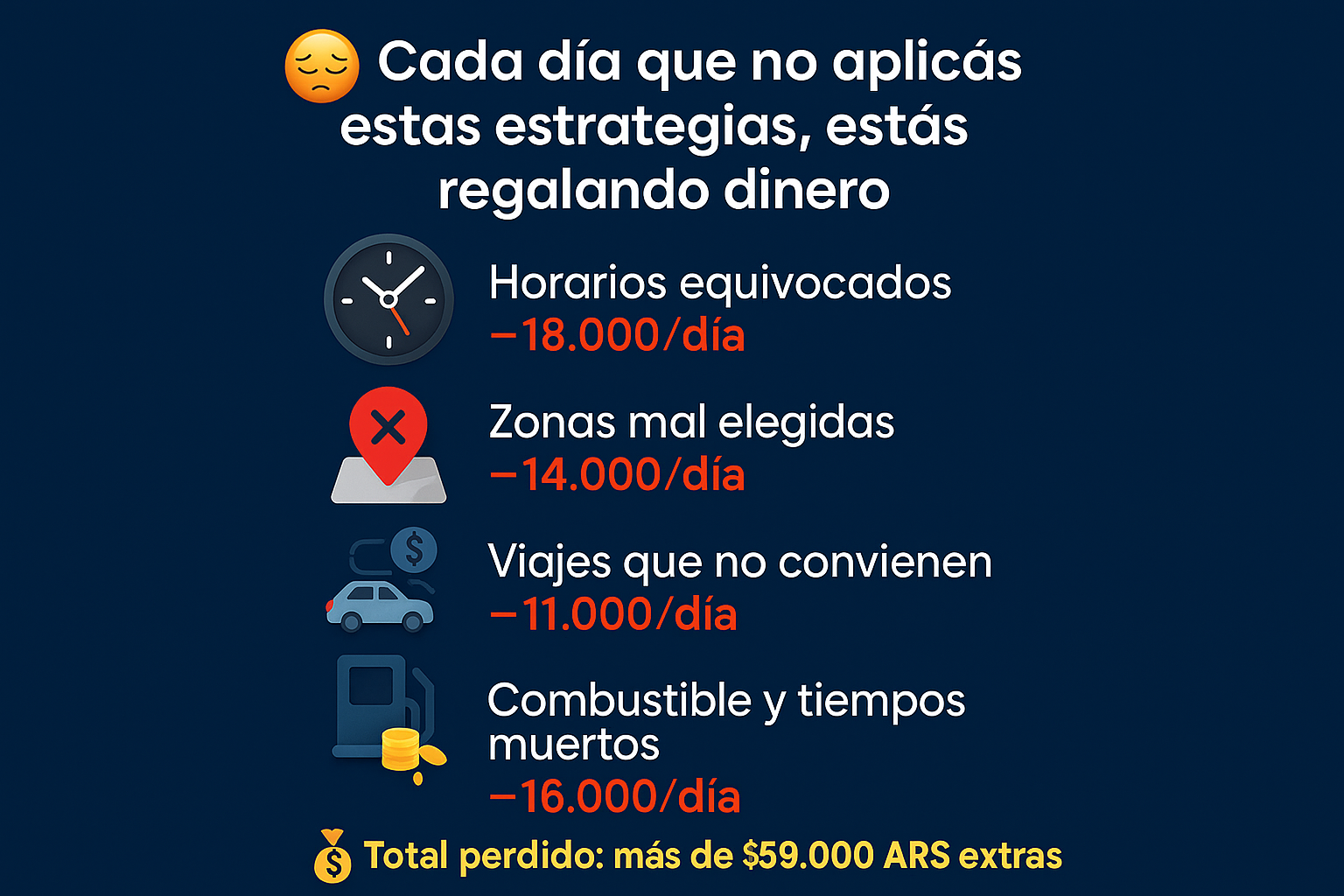 “Solo moví mis turnos a los horarios que recomienda el ebook y dejé de aceptar viajes que daban pérdida. Cerré el mes con +37% y menos desgaste.”